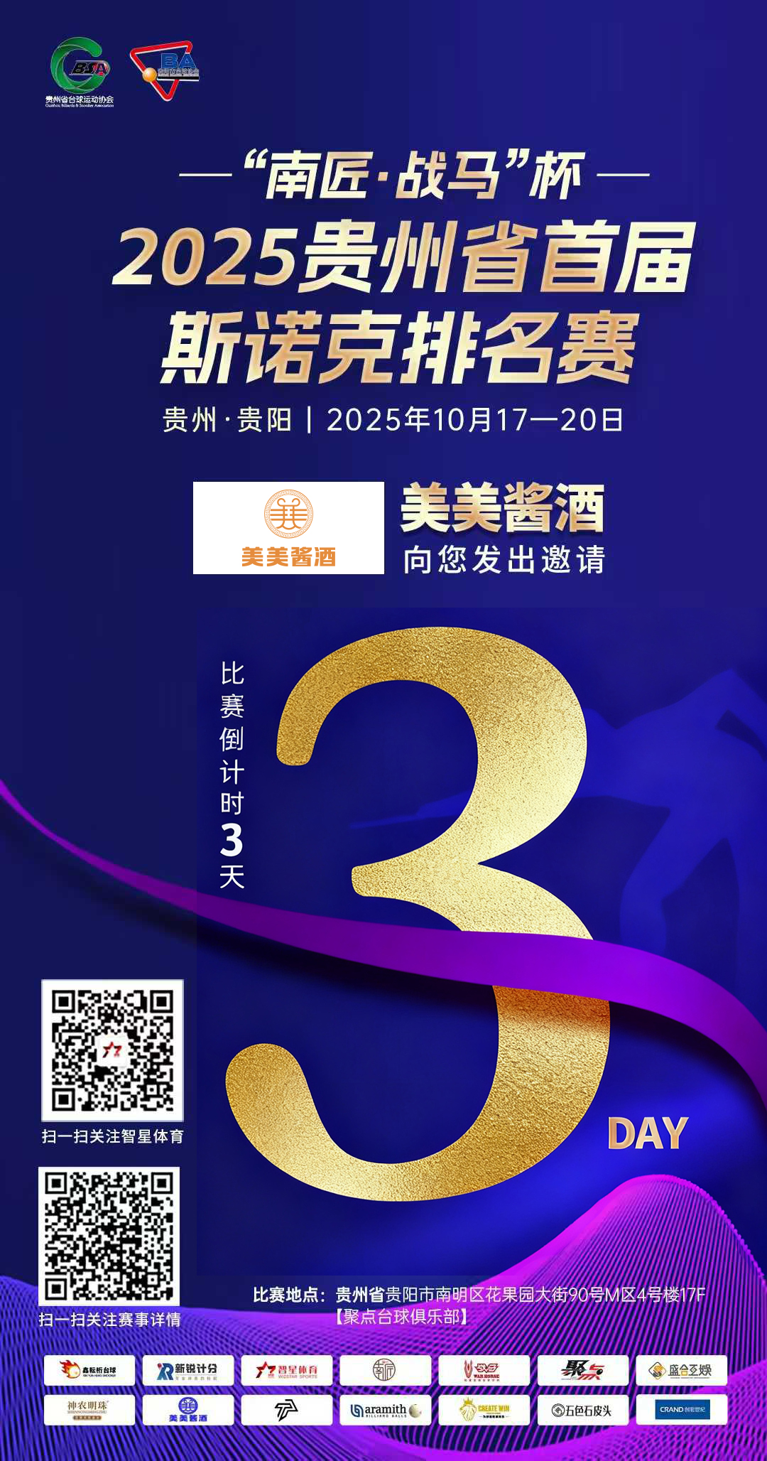 倒计时3天,这场绅士运动与酱香美学的邂逅即将精彩呈现。美美酱酒诚邀您共同关注这场充满智慧与优雅的盛会,让我们一同见证:全省斯诺克精英在专业赛场上的精彩对决