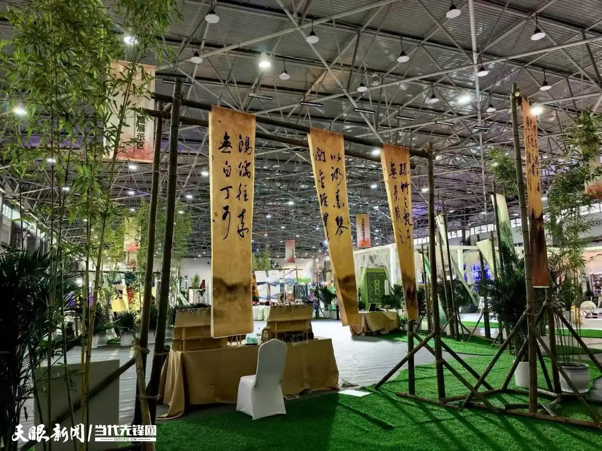 转过一个展区,画风陡然一变。竹林掩映间,几幅写着“鸿儒往来无白丁”“可以调素琴阅金经”的古意长卷悠悠垂下,脚下是仿真的绿草,空气中似有若无的茶香与酒香交融。这里像是一处白酒世界里的“桃花源”,把传统酒文化里的雅致、从容都铺陈开来。有人在竹下的茶桌旁细细品鉴,动作慢悠悠的,带着股子古典的韵味。白酒的根是扎在传统文化的土壤里的,这种刻在骨子里的雅致,是无论如何创新都不能丢的魂。